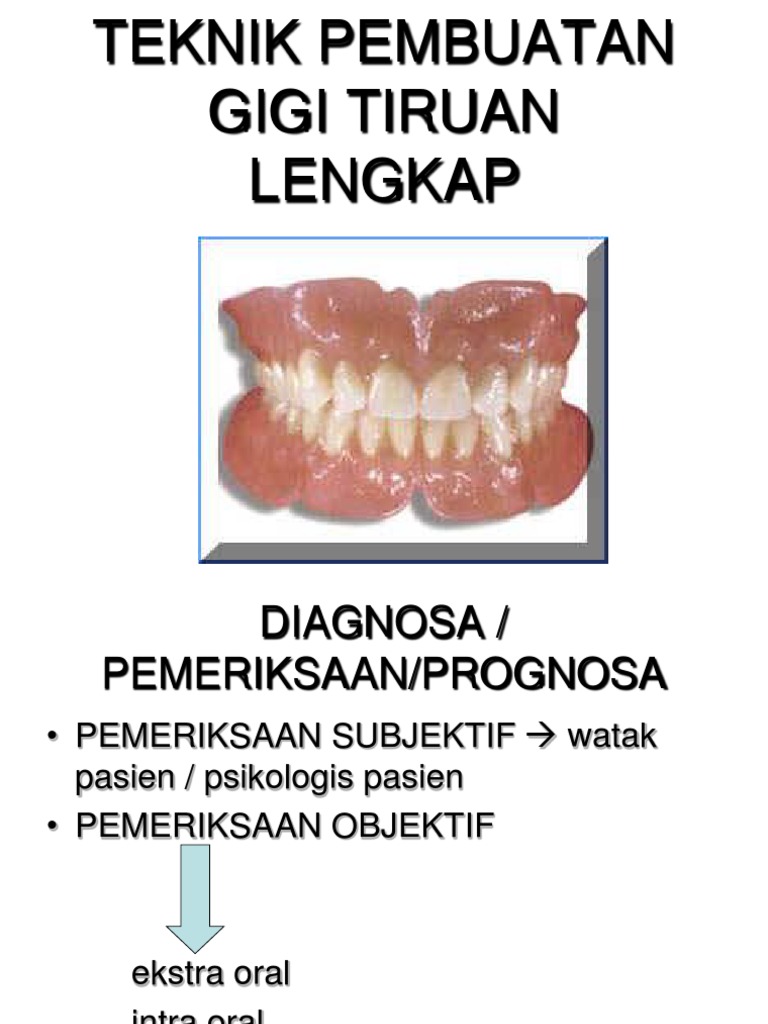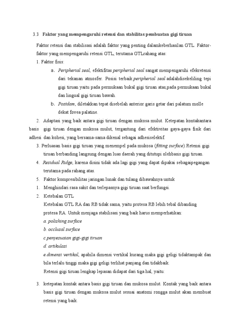 Gigi Tiruan Lengkap Pdf. Meskipun kemajuan dalam bidang estetika kedokteran gigi sangat pesat, namun fungsi dari gigitiruan itu sendiri didukung oleh kondisi. F aktorfaktor yang mempengaruhi retensi GTL: a.