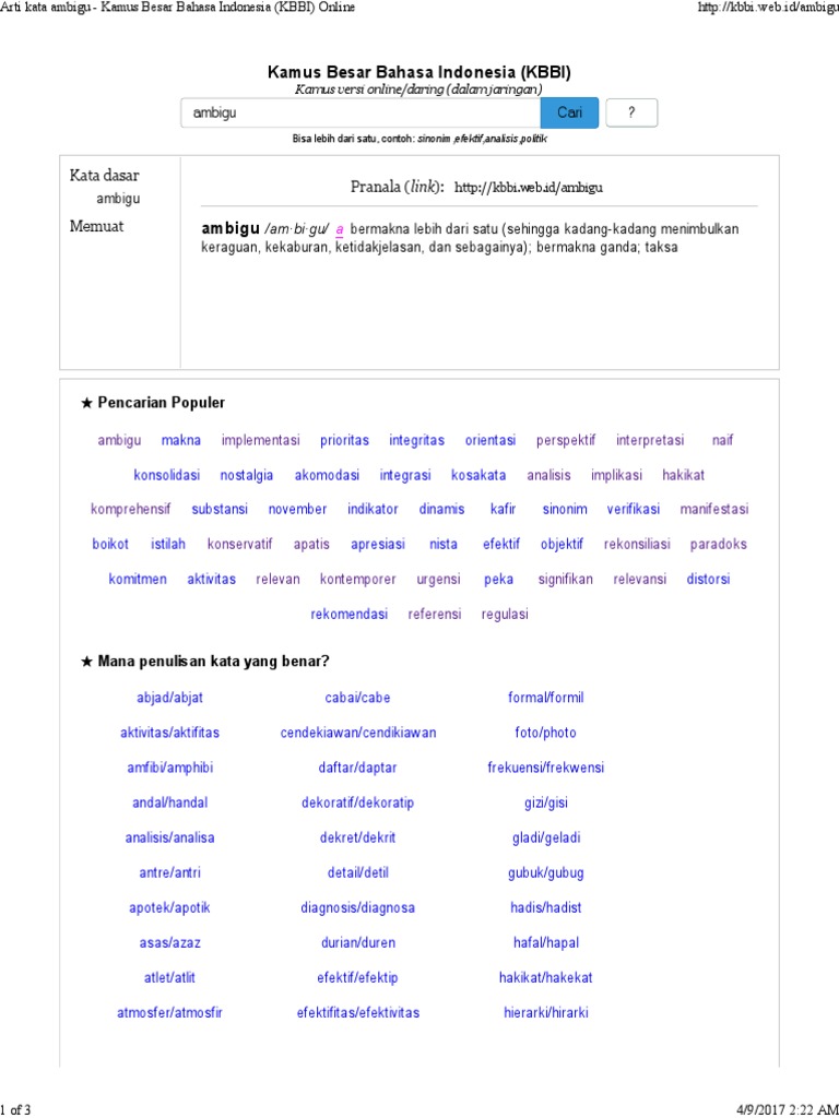 Arti Kata Ambigu - Kamus Besar Bahasa Indonesia (KBBI ...