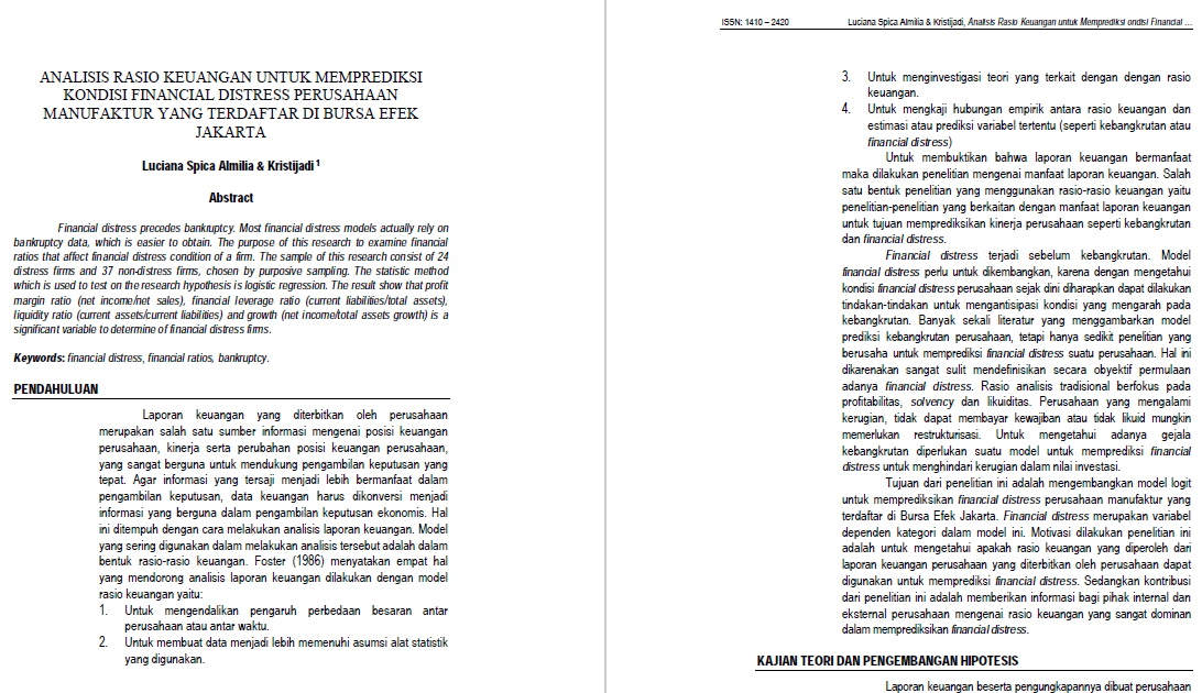 The Jurnal Akuntansi dan Keuangan (JAK) is a peer-reviewed journal, published biannually in May and November by The Institute of Research and Community Outreach, Petra Christian University, Surabaya, Indonesia. .dan Auditing Indonesia (JAAI) is published by Accounting Department, Faculty of Business and Economics, Islamic University of Indonesia December, JAAI is a media of communication and reply forum for scientific works especially concerning the field of the accounting and auditing studies of. Atik Isniawati, Rahmawati Rahmawati and Agus Budiatmanto.